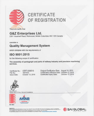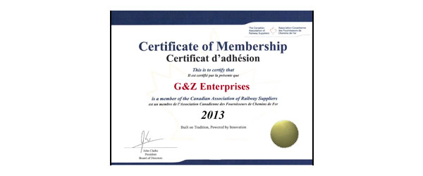 All our products including pantographs meet the IEC standard and recognized by Canadian Railway Supplier Assossication.